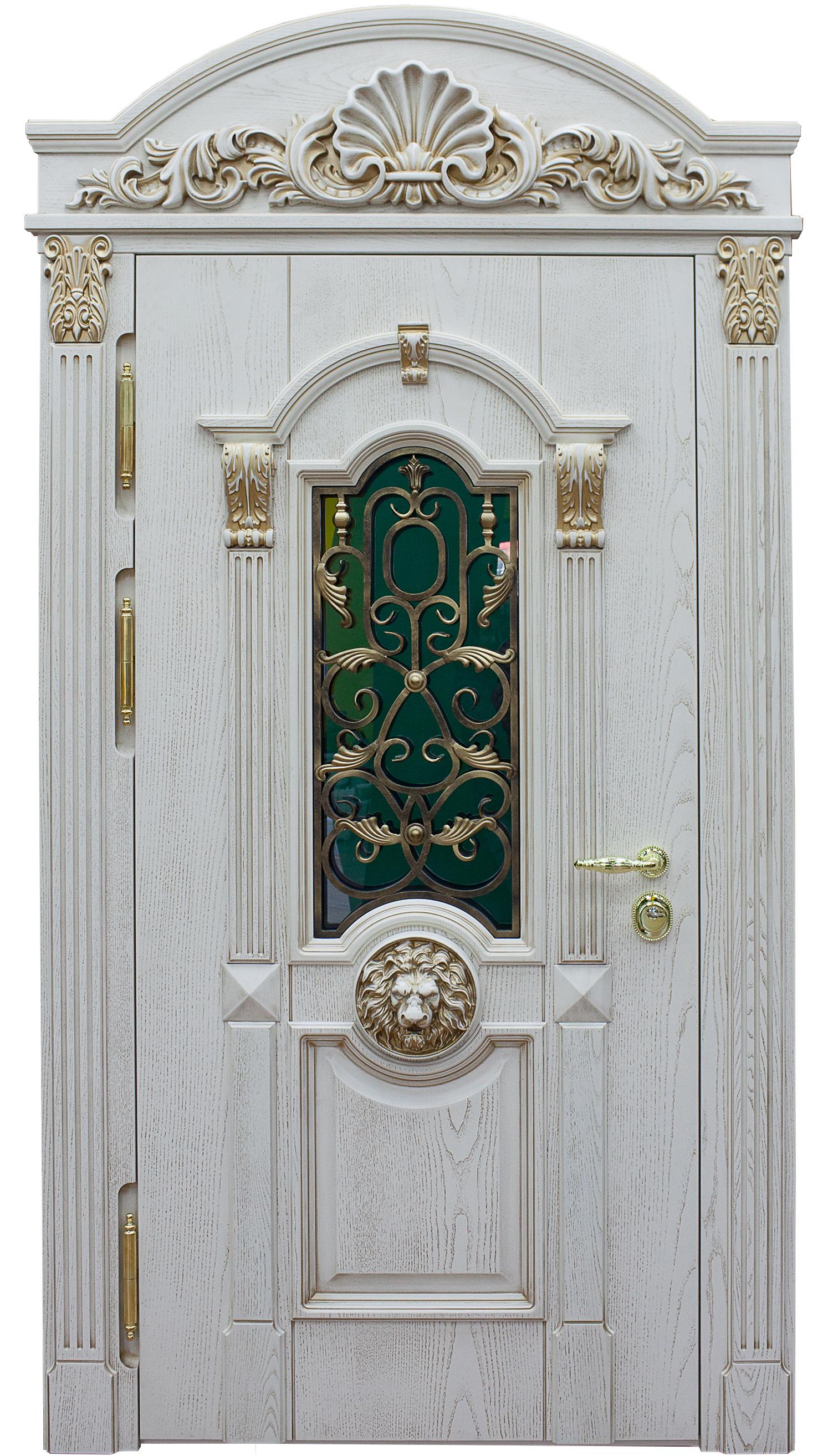 Поговорим об отделке. Вариантов декора дверей много. В большинстве случаев, для отделки элитных дверей используется массив натурального дерева или натуральный шпон с фрезеровкой. Цвет двери так же делается по желанию заказчика. Очень красиво и представительно выглядят двери с ковкой и стеклом.