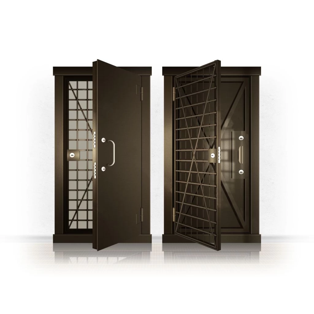 Металлические двери КХО и КХН представляют собой входные блоки, обладающие высоким уровнем взломостойкости и состоят из трех основных элементов: усиленного каркаса, сплошного металлического полотна и решетчатой двери. Дверной блок изготавливается из стального уголка 100*100 мм. Места крепления блока к стене цементируются и закрываются стальными наличниками шириной 40 мм. Крепеж заходит вглубь стены на 80 мм. В конструкции внешней створки монтируются ребра жесткости, для обшивки используется сталь толщиной не менее 3 мм. Внутренняя решетка изготавливается из прутка диаметром 16 мм. Размер ячеек решетки должен составлять не более 15 на 15 см. В точках пересечения прутья надежно приваривают друг к другу. В КХО и КХН необходимо поддерживать определенную температуру и влажность. Для этого внутреннее пространство глухой двери заполняется теплоизоляционным материалом, а по периметру двери приклеивается уплотнитель. Такие двери оборудуются замками с повышенным уровнем взломостойкости. Специализированные двери КХО и КХН в Андреаполе могут быть оснащены сигнализацией, в конструкции могут быть проушины для навесного замка и элементами для опечатывания. Если идет речь о двери в комнату хранения оружия, в створке оборудуется окно для выдачи оружия и спец. средств, которое накрывается стальной дверцей.