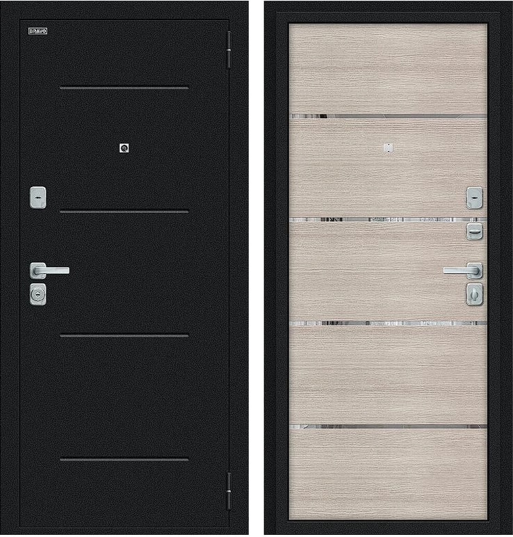 Надежная входная Дверь Браво Лайн/BChrome Букле черное/Cappuccino Melinga премиум класса по цене 32 935 руб. Большая толщина стали защитит от проникновения в ваш дом, квартиру или коттедж. Используется очень качественная фурнитура: замки, цилиндры, ручки, защелки. Покрытие и отделка двери изготовлено под внимательным контролем производителя. Дверь имеет долгий срок службы и гарантию.