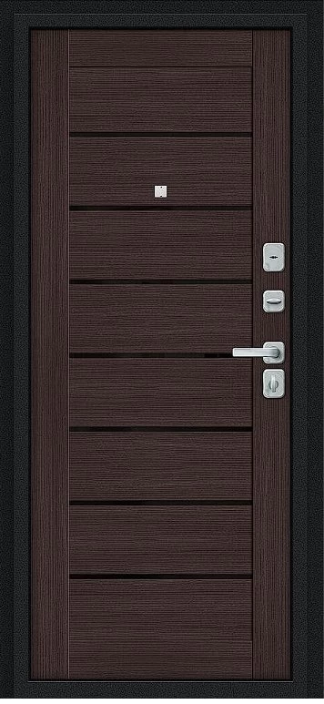 Надежная входная Дверь Браво Техно/BChrome Букле черное/Wenge Melinga премиум класса по цене 34 435 руб. Большая толщина стали защитит от проникновения в ваш дом, квартиру или коттедж. Используется очень качественная фурнитура: замки, цилиндры, ручки, защелки. Покрытие и отделка двери изготовлено под внимательным контролем производителя. Дверь имеет долгий срок службы и гарантию.